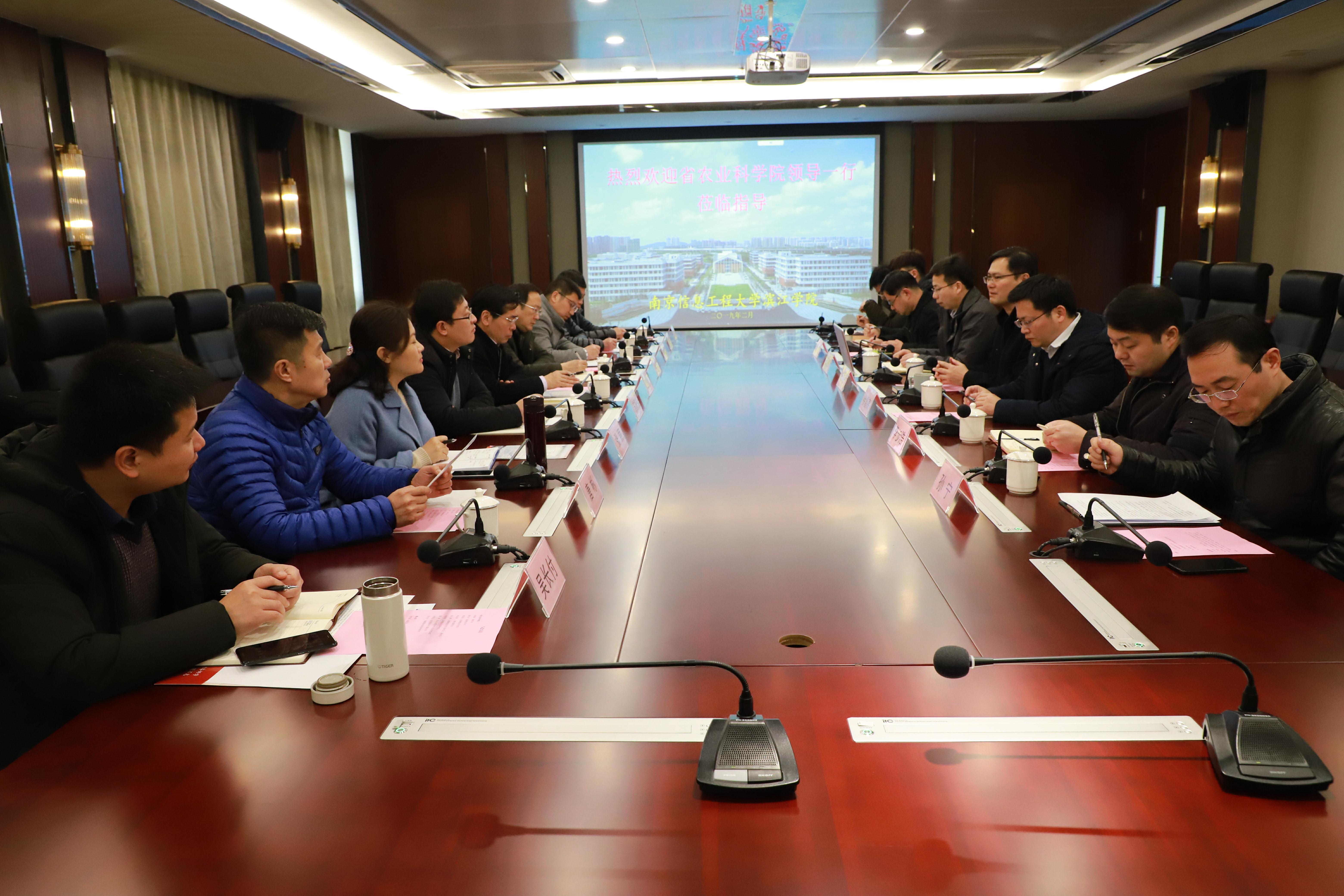 2月28日上午,江苏省农业科学院副院长沈建新、基建处处长徐红兵、后勤处处长苏国东、人事处副处长单成俊等一行来滨江学院调研交流。锡山区副区长徐雪高,滨江学院党委书记左同宇、副院长齐运锋、党政办主任李步浩、总务处处长李小睿出席座谈会,总务处和图文信息中心相关人员参加了座谈会。