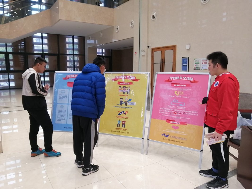 本次“防艾”公益活动分为展台宣传和主题讲座两个环节。展台宣传环节,我院联合锡山区疾控中心通过投放电子海报、悬挂横幅、摆放展板、发放资料等形式向同学们宣传讲解艾滋病的概念、传播途径、流行现状与危害、预防措施等方面的知识,增强同学们对艾滋病的预防意识。同学们也纷纷在背景墙上签名并在留言共勉。现场还组织发放了“防艾”宣传资料和计生用品若干。