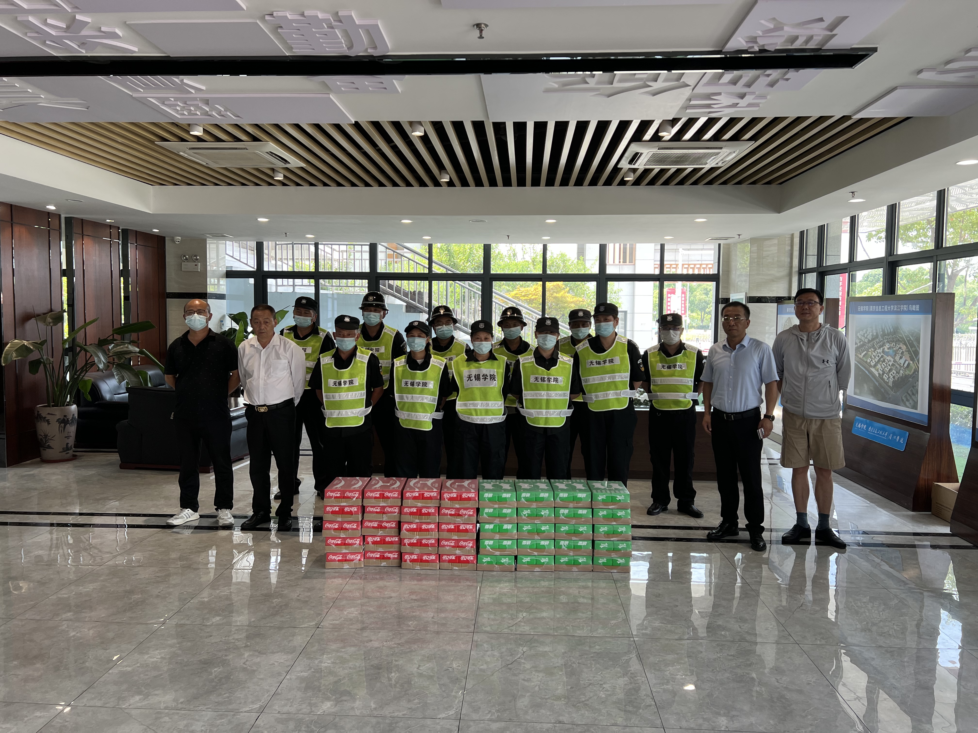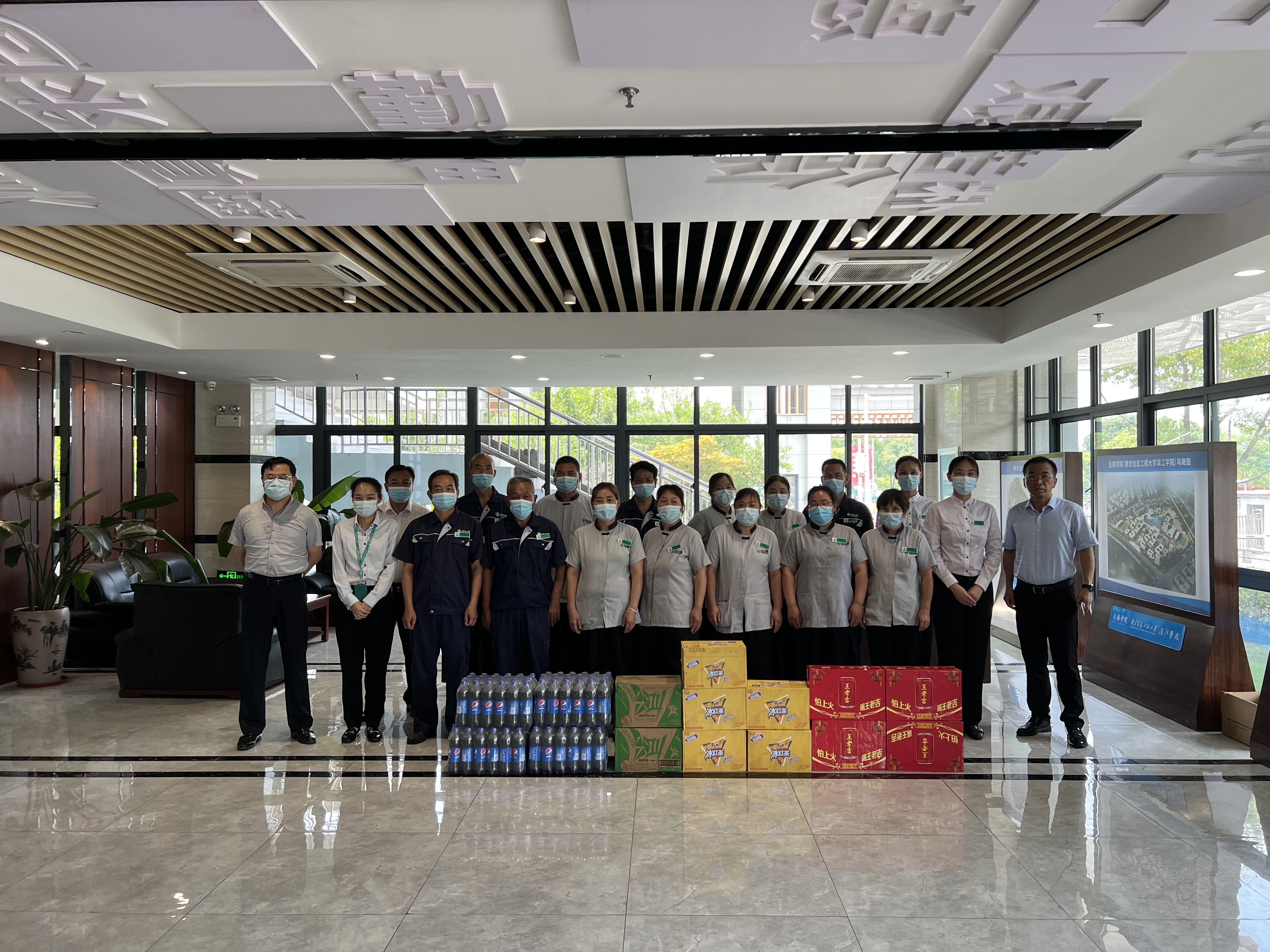 7月13日上午,无锡学院副校长胡剑凌以及相关职能部门负责人先后来到行政楼、食堂和校医院等场所,向暑期坚守岗位的一线后勤安保工作人员表示慰问,并为他们送上防暑降温慰问品。