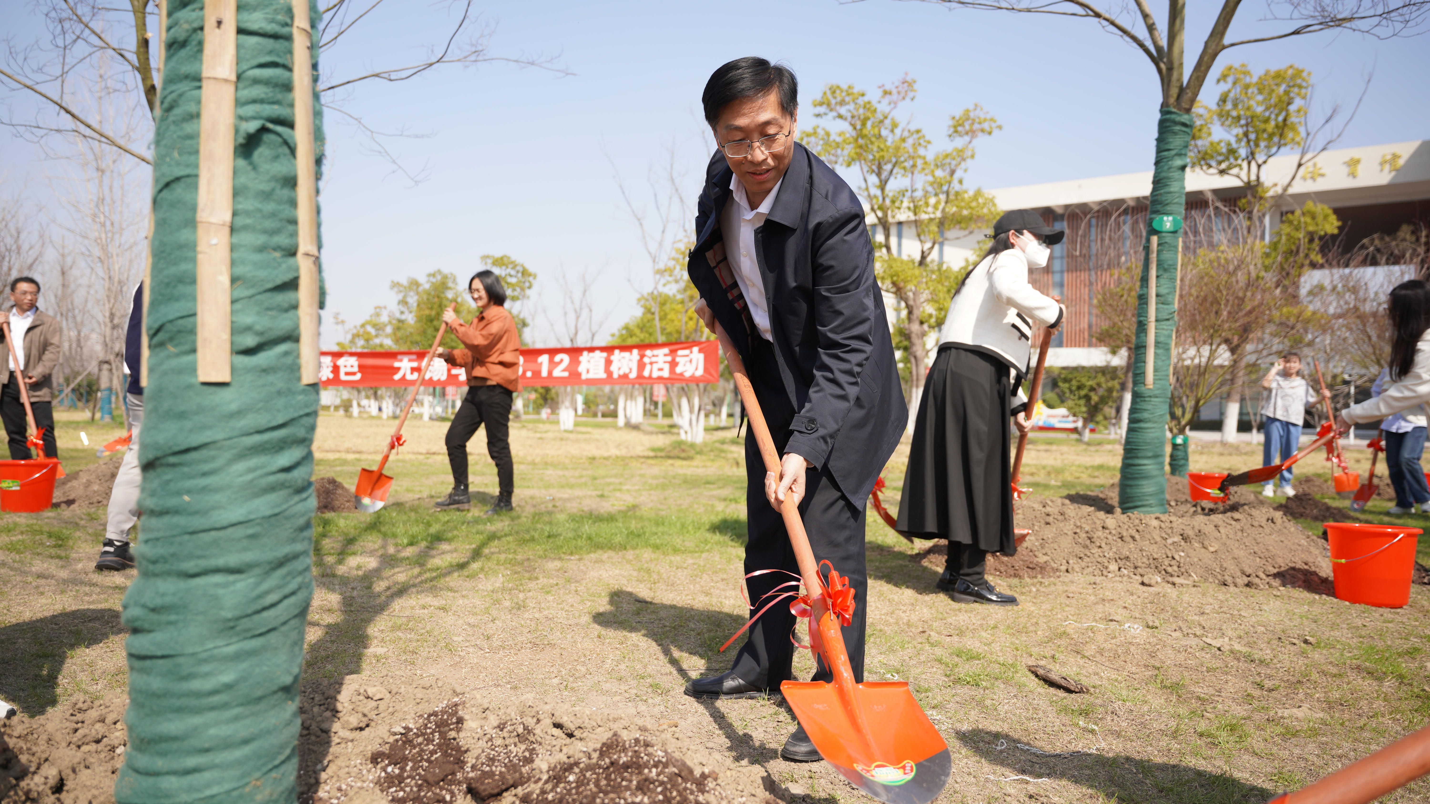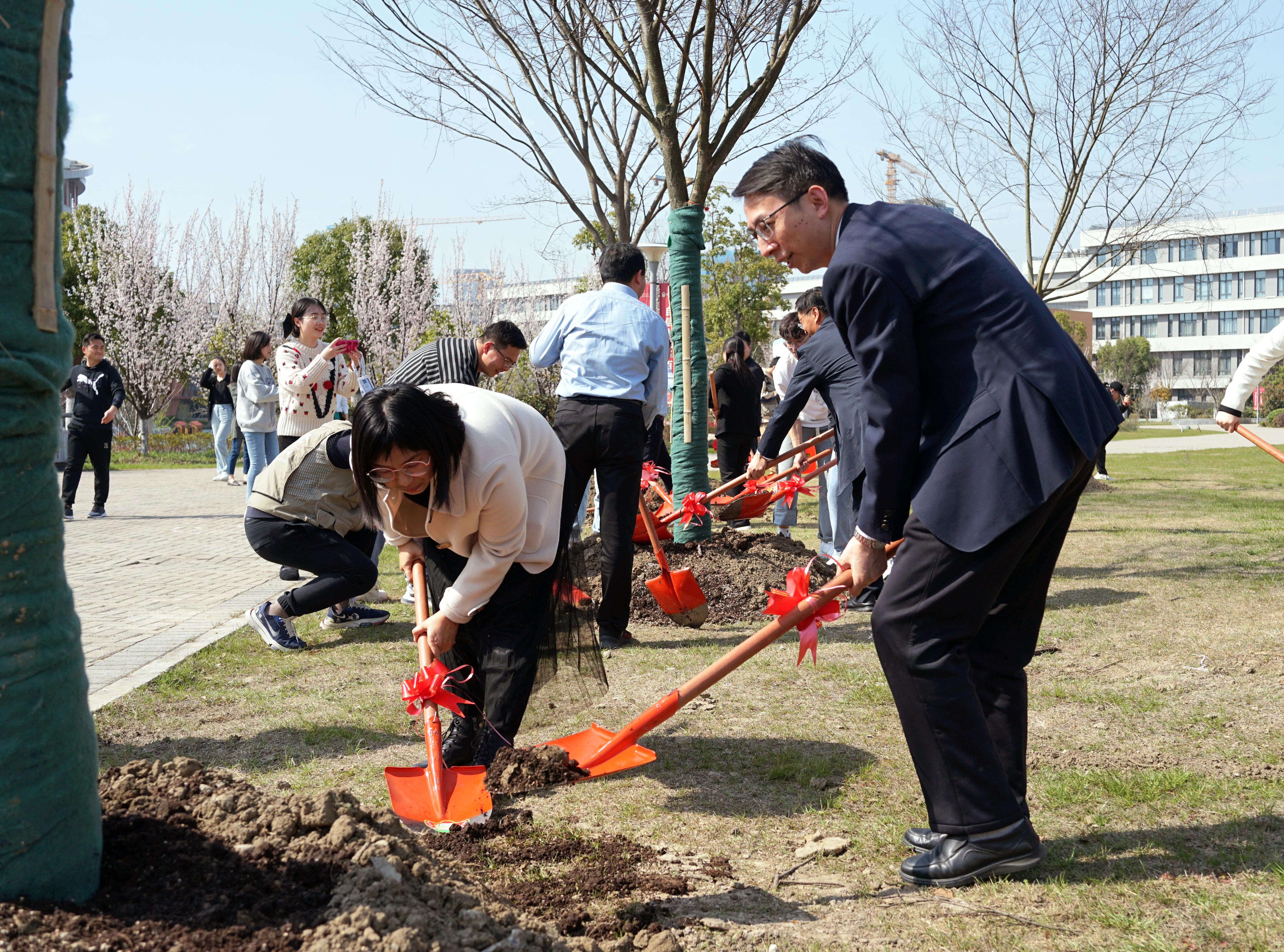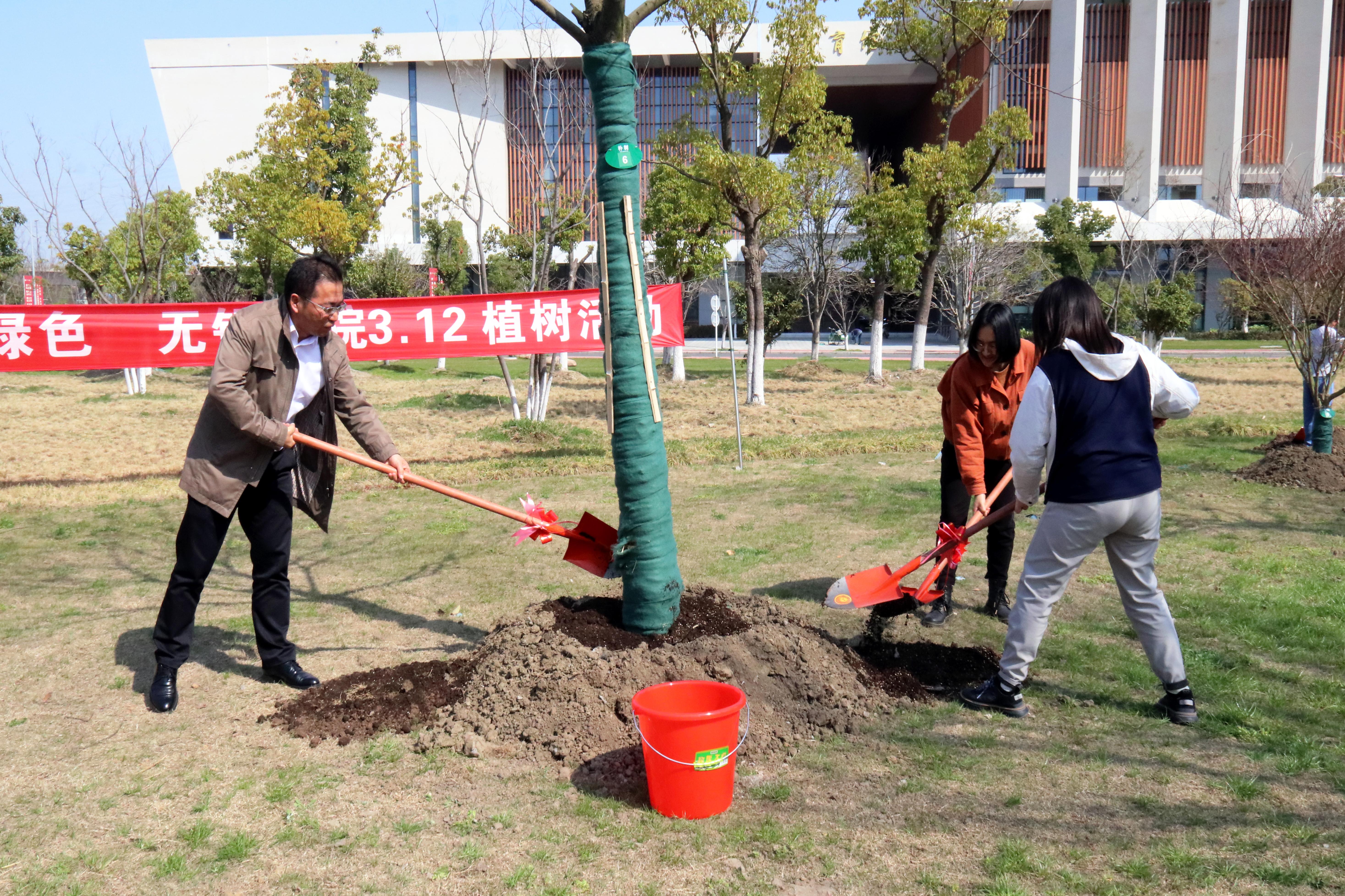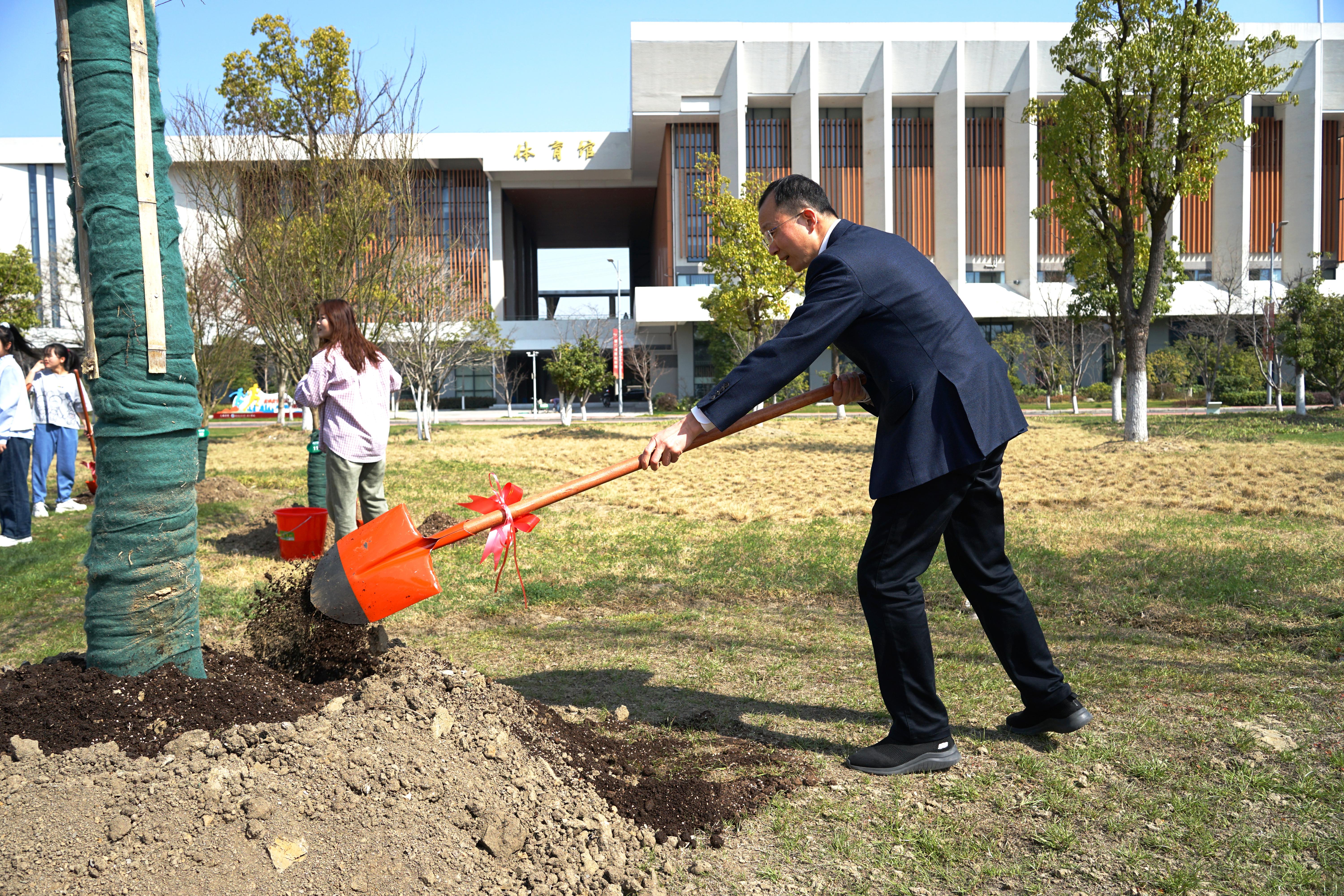 春回大地,万物复苏。3月10日下午,值全国第45个植树节来临之际,我校在溢思园开展了以“我为学校添绿色”为主题的植树节活动。校党委书记杨建新,校党委副书记、校长张永宏,校党委副书记匡辉,副校长曹广喜,校纪委书记王友明,副校长胡剑凌及党委院长办公室、学生工作处、后勤管理处、轨道交通学院等部门师生代表50余人参与了本次活动。