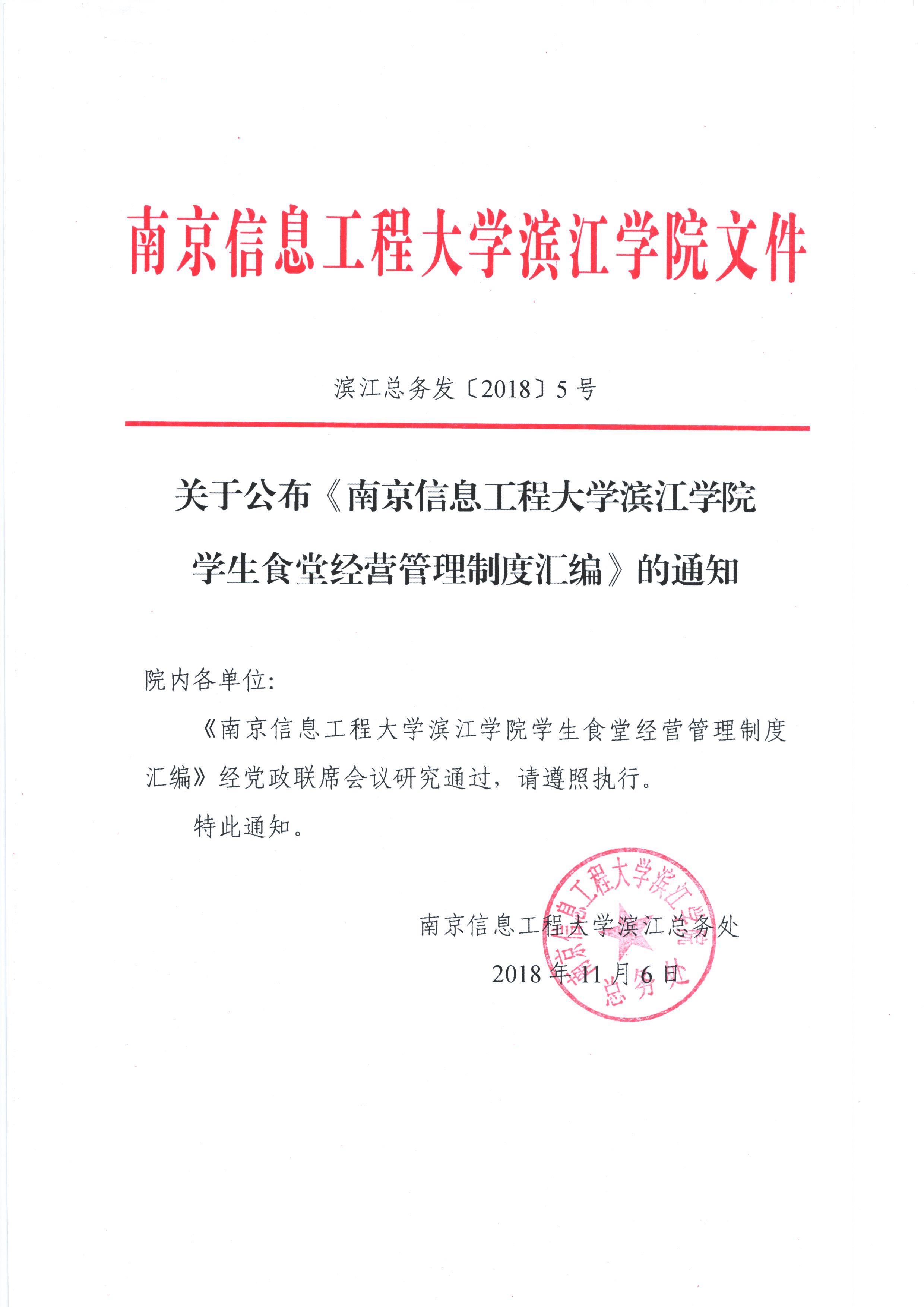 关于公布《南京信息工程大学滨江学院学生食堂经营管理制度汇编》的通知