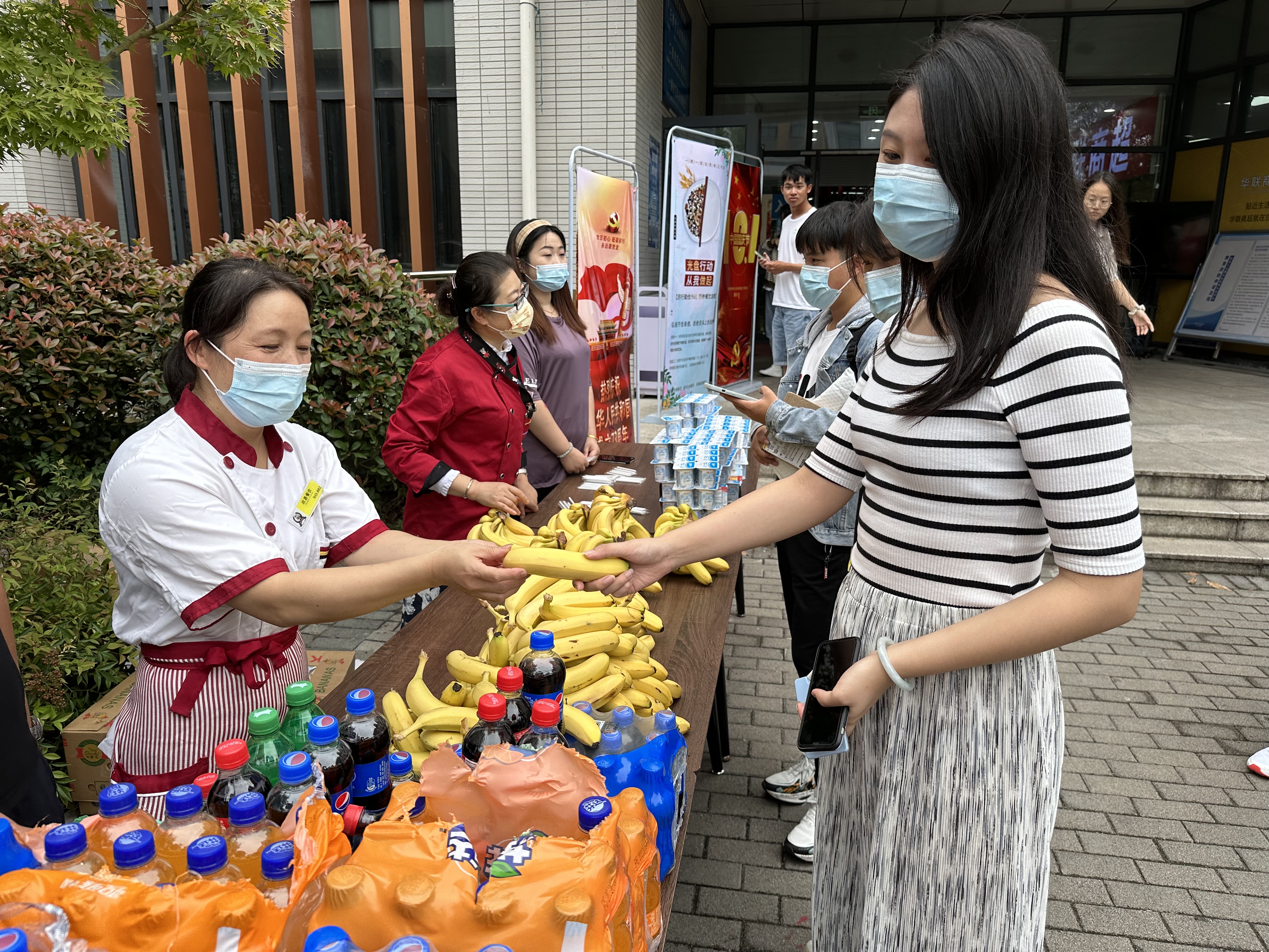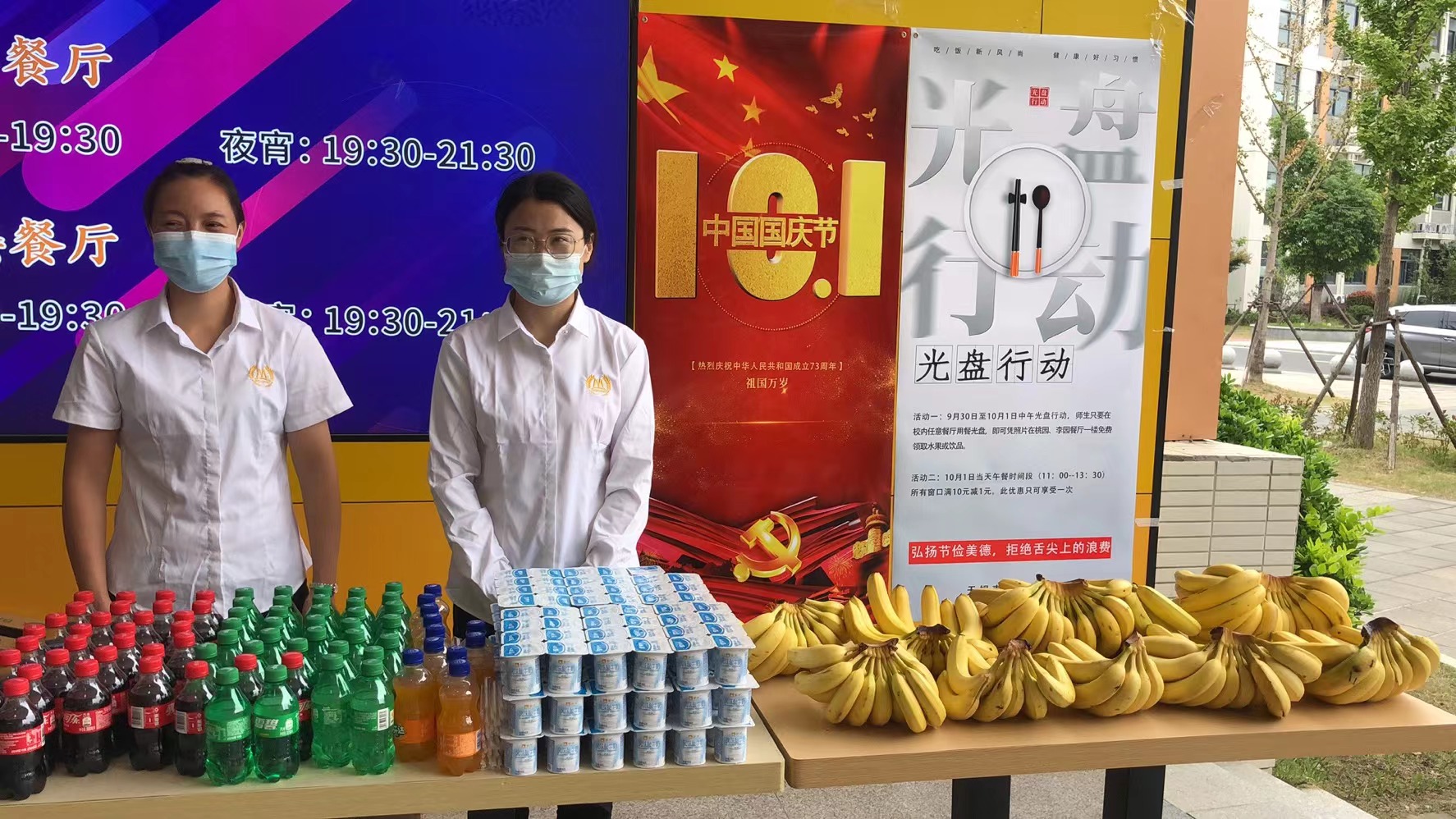 此次活动由后勤管理处牵头组织,活动当天,各食堂在场地内摆放国庆宣传横幅和活动展板,食堂大屏循环播放欢度国庆动态,积极营造节日气氛。用餐时间段,师生纷纷拍照,“晒”出自己与美食“光盘”照片进行留念,凭照片免费领取水果或饮料。